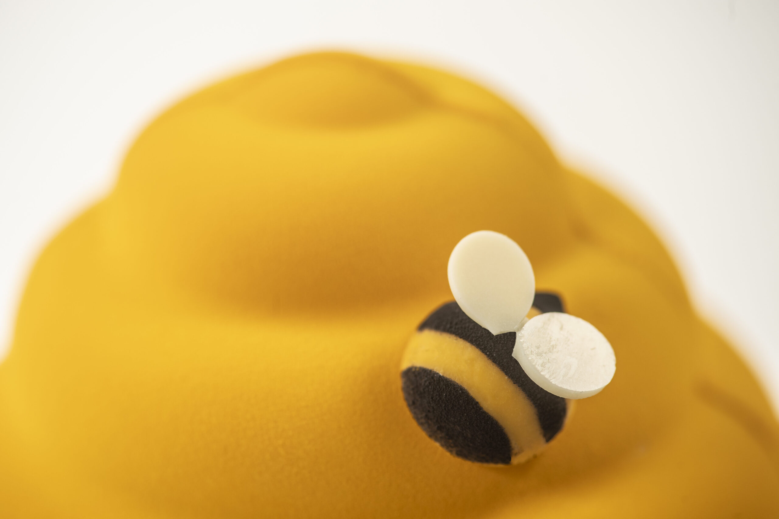 De bijtjes zijn volledig van chocolade en bestaan uit witte chocolade.