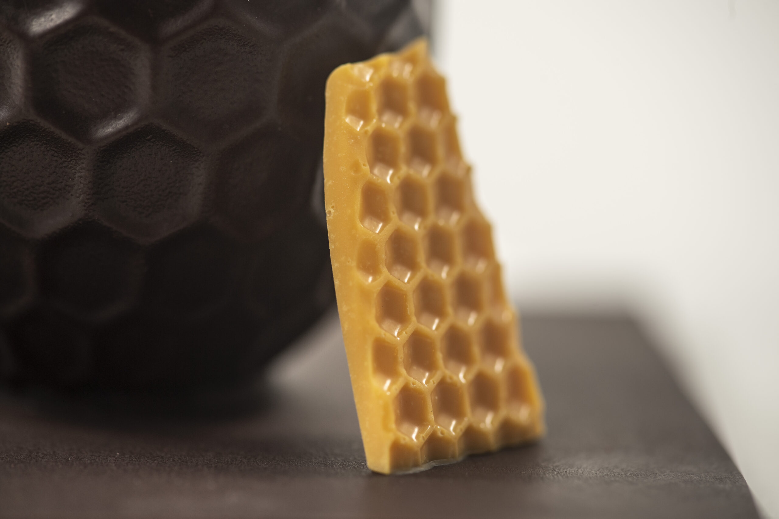 Het bijtje en het stukje honingraat zijn gemaakt van witte chocolade.