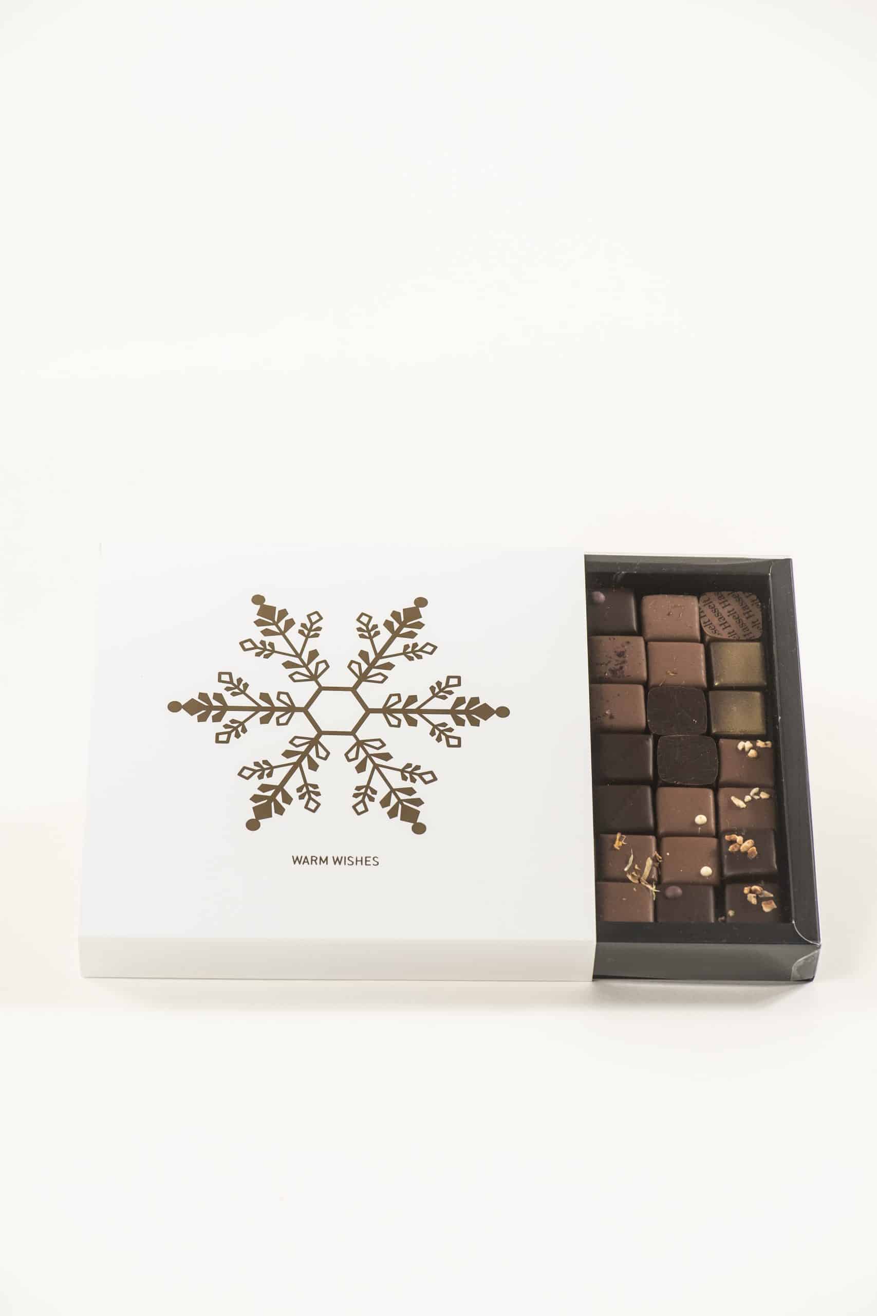 Luxedoos met 49 artisanale pralines – Kerstverpakking